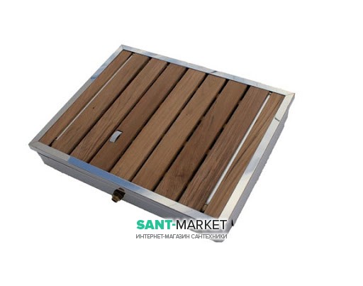 Піддон з вбудованим душем нержавіюча сталь/тік коричневий AQA 95