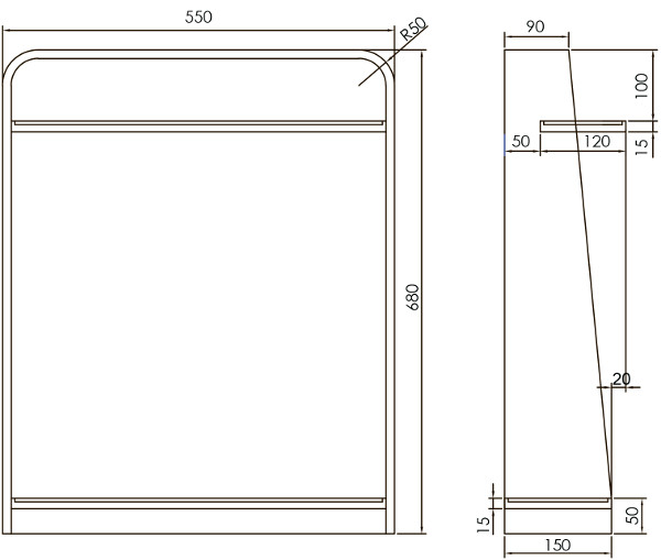 1) Плитка полку-полотенцедержатель кам'яна Volle Solid surface 550х150 мм білий