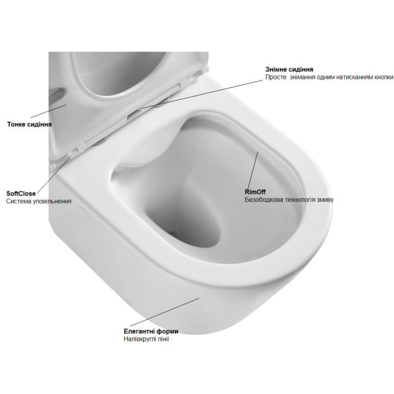 - RimOff –технологія ополіскування чаші без класичного обідка