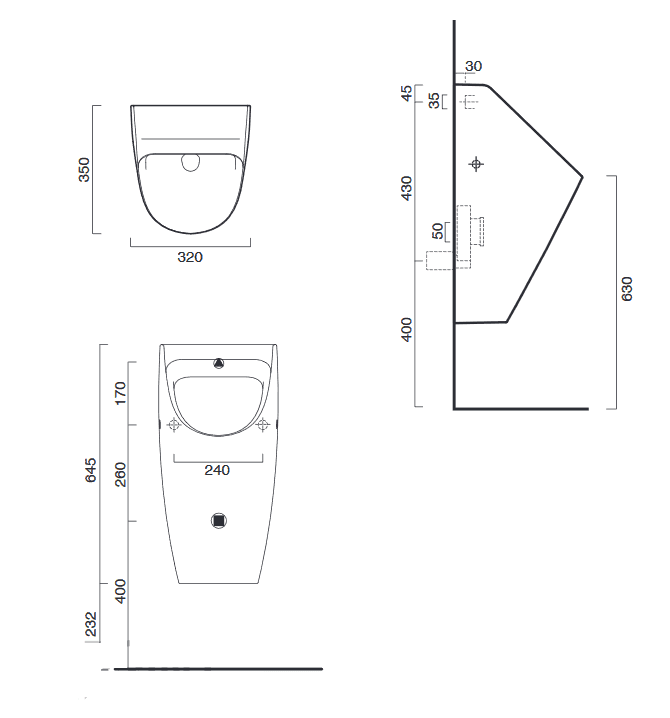1) Писсуар Catalano Sfera підвісний кераміка білий матовий