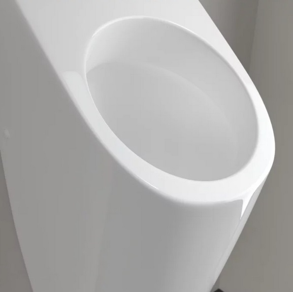 За рахунок спеціально спроектованого нахилу задньої стінки бризки рідини в пісуарі Villeroy & Boch стікають вниз для максимальної гігієнічностітуалет або домашня ванна кімната. Пісуар із захистом від бризок легко чистити. Спеціальна конструкція розбиває струмінь сечі і спрямовує його прямо в стічний отвір.