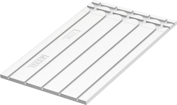 Панель для сухого монтажу TECEfloor TP 30/16Панель для укладання труби поверхневого опалення згідно з типом конструкції B (укладання труби в шар ізоляції під бетонну стяжку).Допускається застосування стандартних елементів як для сухої бетонної стяжки (Knauf, Fermacell, Rigips і т. д.), так і для вологої (цементна стяжка, текуча стяжка). Виконана із жорсткого пінополістиролу (EPS), має канали для укладання труб для встановлення теплопровідних профілів TECEfloor та труб поверхневого опалення TECEfloor розміру 16 x 2 мм. Допускає укладання труби одинарним або дфойним меандром, не містить HBCD (гексабромциклодекан).