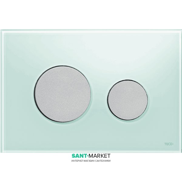 1) Панель змиву ля унітазу TECE TECEloop з двома клавішами скляна зелена колір клавіші хром матовий