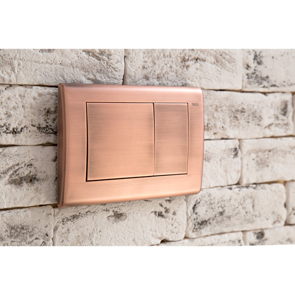 Металева панель змиву TECEplanus (9240365) класичне рішення для ванної кімнати. Висока якість матеріалів і простота дизайну кнопки змиву TECEplanus дозволяють використовувати їй в будь-якому проекті дизайну. В даному колірному варіанті панель і клавіша кольору зістарена мідь. Завдяки металевій поверхні і додаткового захисту від крадіжки клавіша змиву рекомендована для використання в громадських приміщеннях.