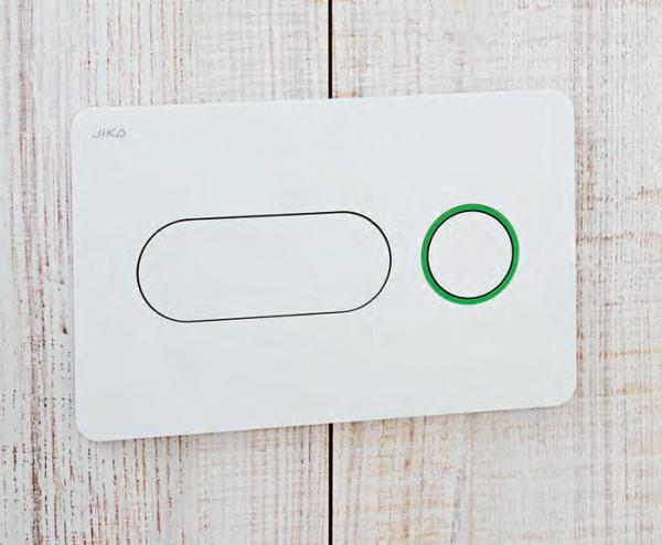 1) Панель змиву для унітазу Jika Modul подвійний змив біла основа зелене кільце
