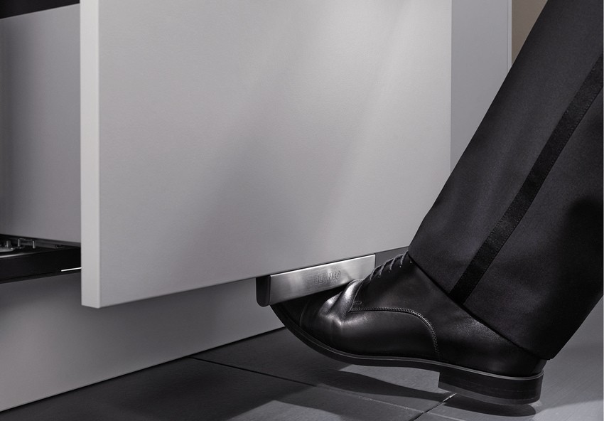 Кожен, кому доводилося стояти перед зачиненими дверима шафи з повними руками сміття, зможе оцінити додатковий функціональний елемент Movex для відкривання сміттєвої системи ногою. В елегантній обробці з нержавіючої сталі, він без особливих зусиль монтується на дверцятах шафи з будь-якого матеріалу.