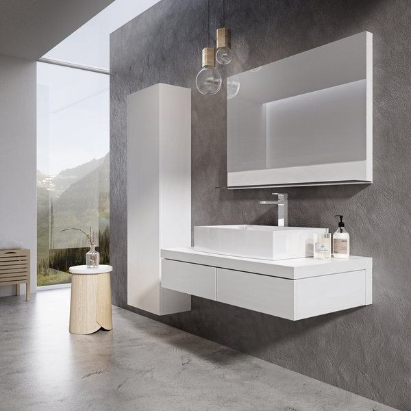 Незважаючи на свою універсальність і внутрішній обсяг, меблі Formy не виглядає масивно, і не ускладнює ванну кімнату. Покриття - білий глянсовий лак, варіант шпону (дуб або горіх) приносить у ванну кімнату природну красунатурального матеріалу.