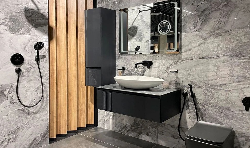 Пенал для ванної кімнати Аквародос Манхеттен підвісний 35х33,3х120 см МДФ антрацит матовий АР000091174