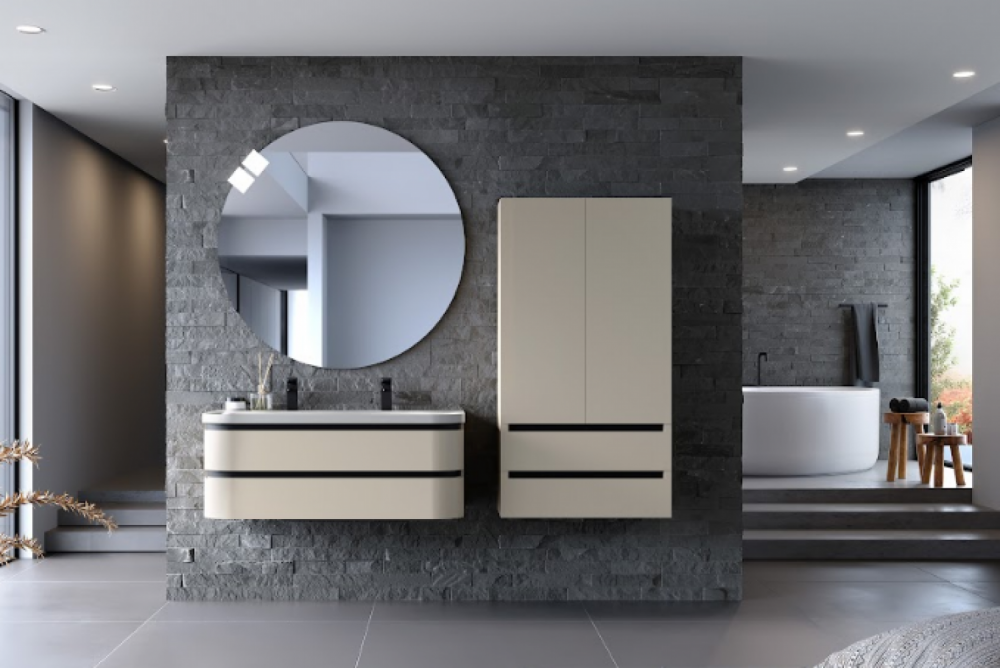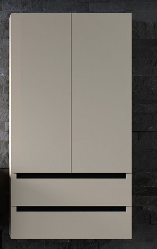 Vittoria представлена у трьох одноколірних декорах – білому, бежевому та темному. Відчуття гламуру додатково підкреслюється лакованими лицьовими сторонами елементів. Для більш просторих ванних кімнат пропонуємо шафи подвійної ширини з м'яким.закриття, стильно доповнені частково інтегрованими ручками.