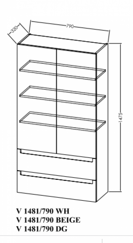 Пенал для ванної кімнати Kolpa San Vittoria V 1481/790 790x1475x320 мм МДФ бежевий