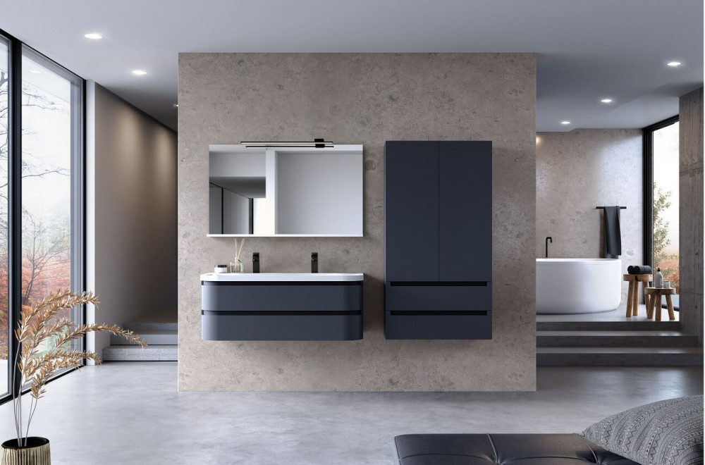 Vittoria представлена у трьох одноколірних декорах – білому, бежевому та темному. Відчуття гламуру додатково підкреслюється лакованими лицьовими сторонами елементів. Для більш просторих ванних кімнат пропонуємо шафиподвійна ширина з м'яким закриттям, стильно доповнена частково інтегрованими ручками.