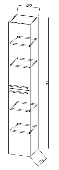 1) Пенал для ванної Kolpa-san Jolie J 1803 30х180 см ДСП сатин дуб