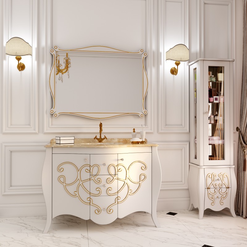 1) Пенал для ванної Marsan Bernarde 45х180 см МДФ білий / золото