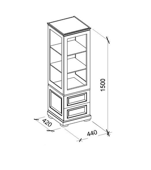- Особливості: з 2 висувними ящиками і 1 скляними дверцятами