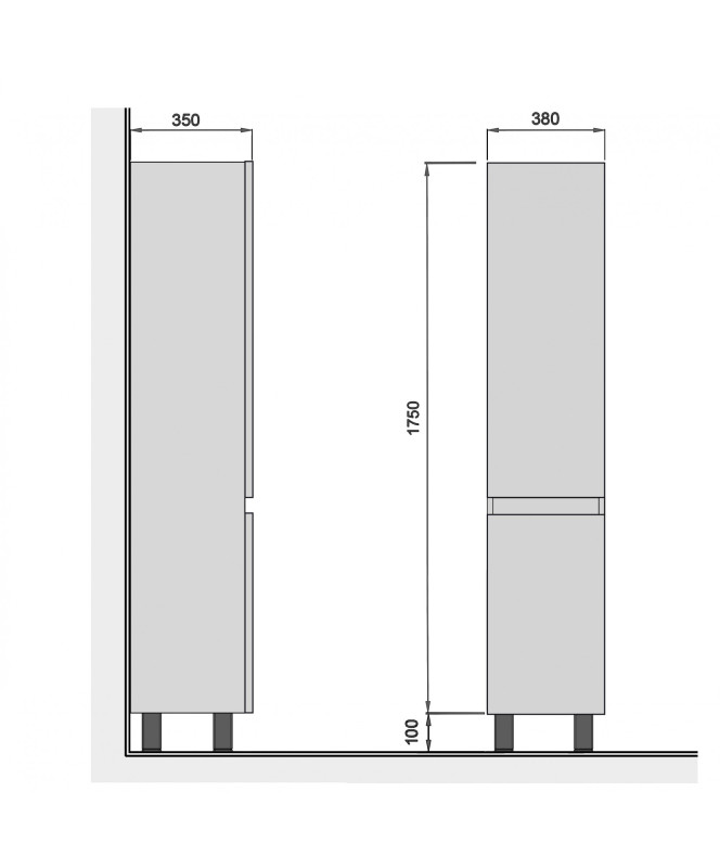 Пенал для ванної Мийдодір MoonShine П-38 38х35х185 см ДСП білий глянець 00-0008515