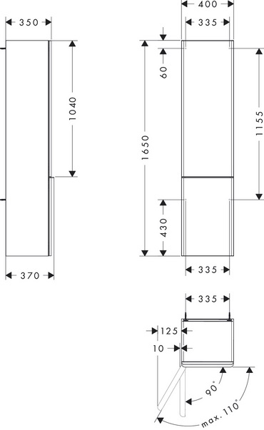 Пенал підвісний Hansgrohe Xelu Q 40х35 см петлі зліва МДФ глянсовий білий ручка матовий чорний 54135670