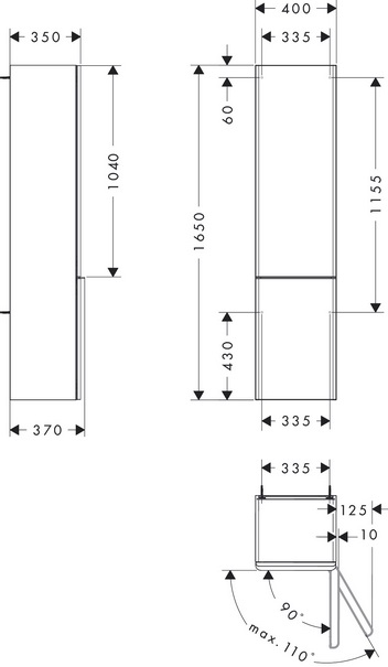 Пенал підвісний Hansgrohe Xelu Q 40х35 см петлі праворуч МДФ матовий сірий ручка матовий білий 54140700
