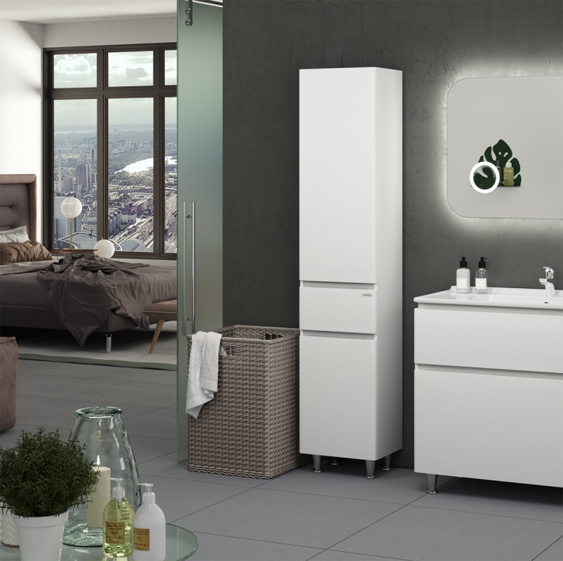 1) Пенал підлоговий Sanwerk Амата правий МДФ білий