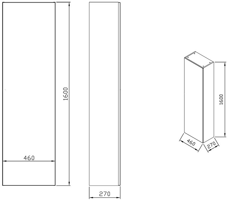 - розміри (Ш): 46 x 27 x 160 см