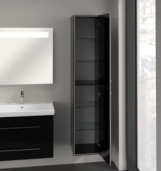 Пенал Villeroy & Boch Avento 35х40,4х176 см петлі праворуч МДФ з акриловим покриттям скло чорне A89401B3