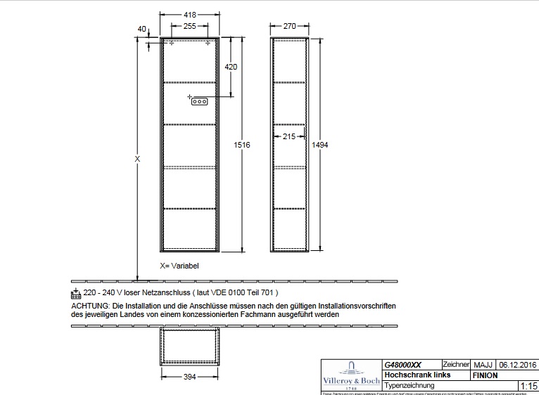Пенал Villeroy & Boch Finion 41,8x151,6х27 см петлі зліва з підсвічуванням МДФ пісок матовий лак G48000HH
