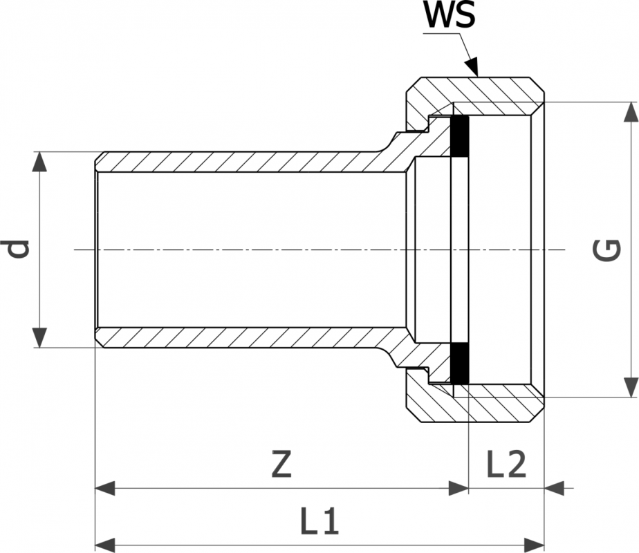 - Плоске кільце ущільнювача EPDM, різьбове з'єднання з накидною гайкою