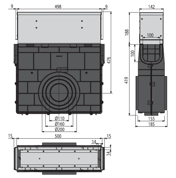 AVZ101R-R122R пескоуловитель для дренажного каналу з щілинним асиметричною сервісної надставкою 160 мм, оцинкована сталь