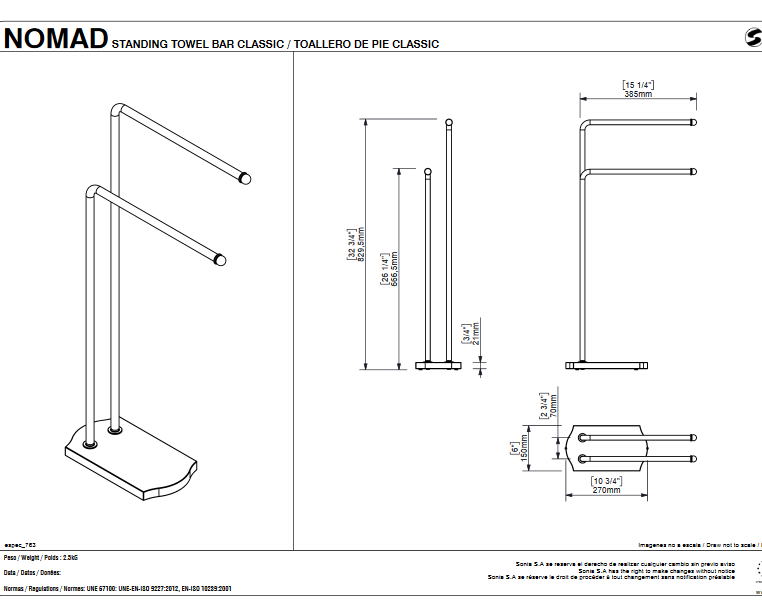 Підлоговий тримач для рушників Sonia Nomad з підставкою хром / білий