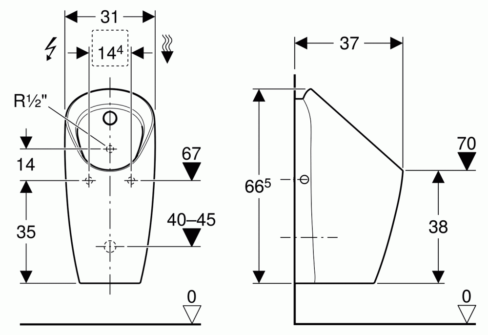 - Згідно з положеннями стандарту EN 13407, при промиванні санфаянса пісуара гарантується обсяг 0,5 л на змив