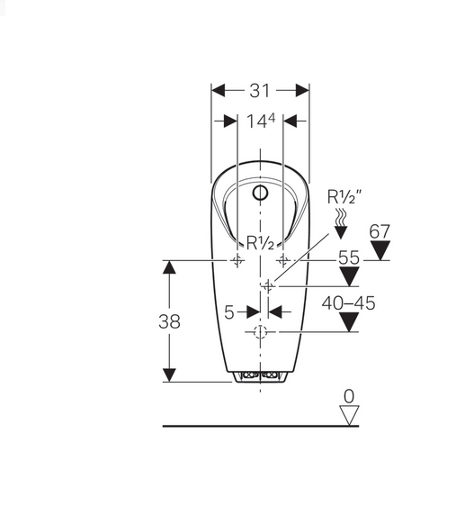 - Згідно з положеннями стандарту EN 13407, при промиванні санфаянса пісуара гарантується обсяг 0,5 л на змив