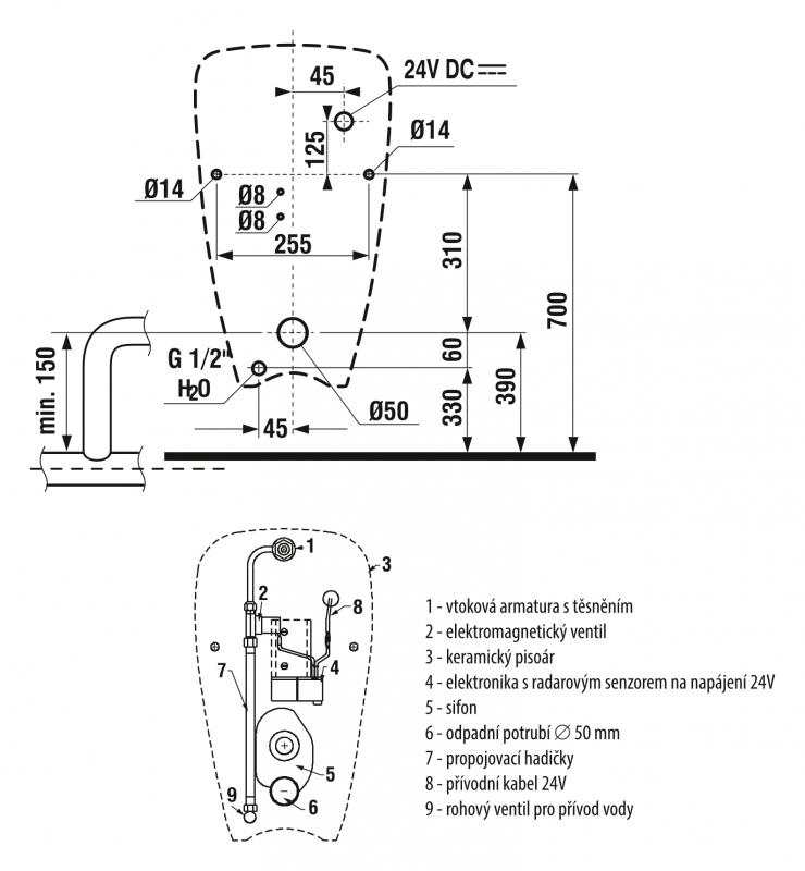 1) Писсуар підвісний Jika Livo радарний сенсорний змив білий