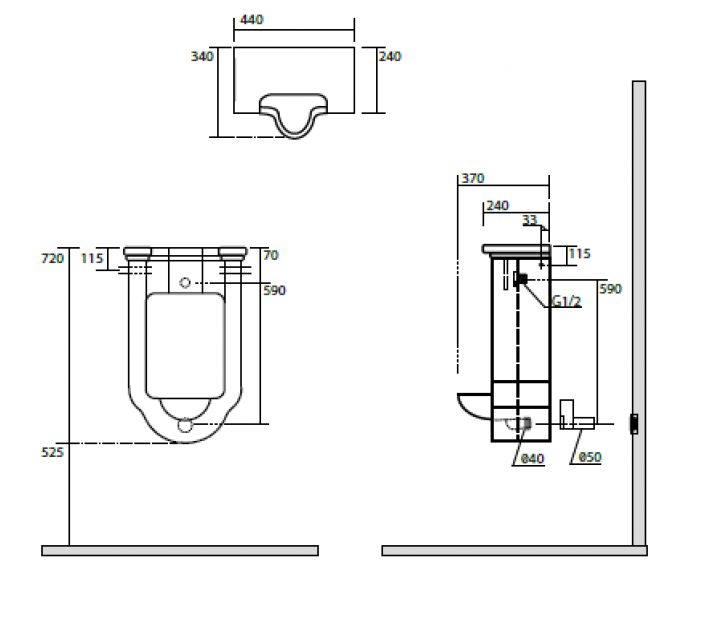 - Писсуар підвісний, в комплекті з кріпленням і сифоном