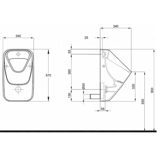Пісуар підвісний KOLO NOVA PRO 34x34x57h см білий M36000000