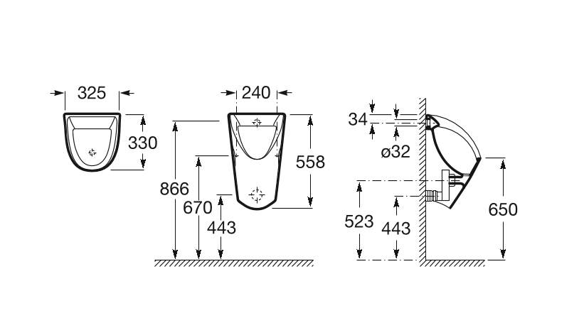 Пісуар підвісний Roca Chic підведення води ззаду кераміка білий A35945O000