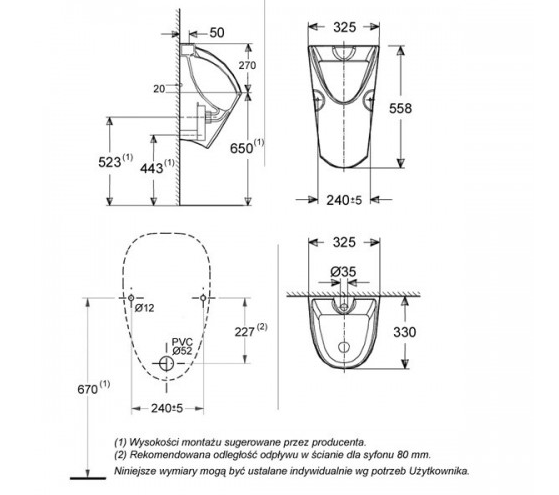 Пісуар підвісний Roca Chic з верхнім підведенням кераміка білий A35945N000