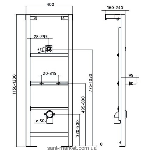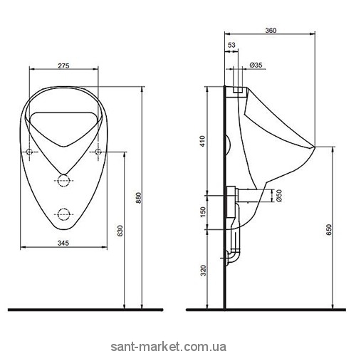 1) Пісуара Felix 26011000 з верхнім підведенням води