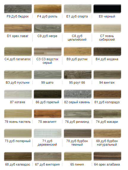 Колір палітра (фото), при замовленні до артикулу SG50хх замість хх ставимо номер кольору (наприклад SG50F4 колір "дуброяль ")