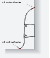 Є гумові краю для більш щільного прилягання плінтуса до підлоги і стіни.
