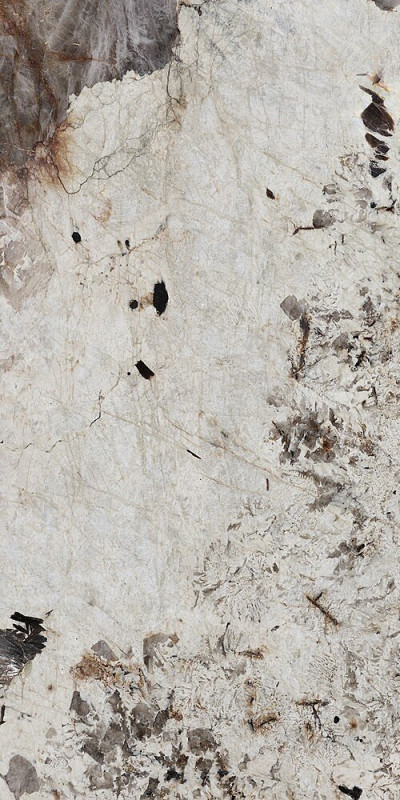 Модель з екзотичною елегантністю з глянсовим та нечітким тлом, на якому відкриваються включення з граніту. Протікають кольорові струмки, і темне чорнило згущується і віддаляється один від одного.