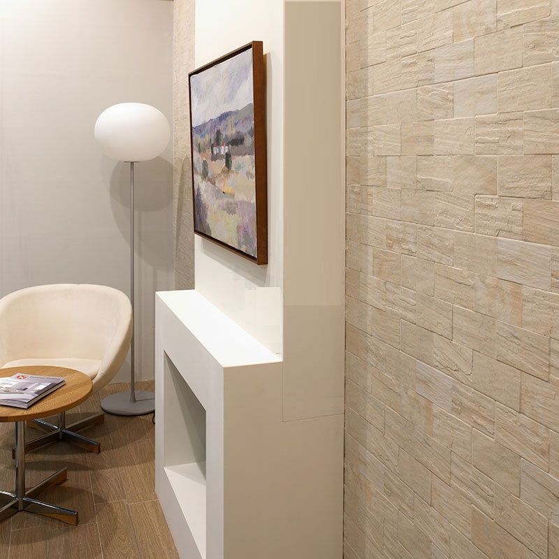 Модулі настінної плитки Etna Jet від El Molino виконані у вигляді цегляної кладки формату 33,3х66,6х1 см. Вони мають фігурний край «шип-паз», який приховує Затирочний шов. Завдяки цьому готова облицювання виглядає монолітною.