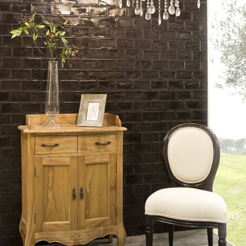 Самі «цеглинки» покриті глянсовою глазур'ю з високим ступенем дзеркальності. Їх поверхня нерівна, немов реміснича, а тому відбиває світло набагатокраще, наповнюючи простір відблисками і відбитками.