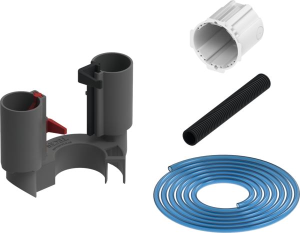 Пневматичний пульт дистанційного керування для бачків Uni 750, Uni та Baseдля децентралізованого керування бачком у поєднанні зпанель механічного змиву TECE або панель огляду. Для використання в масивних і гіпсокартонних стінах або вбудованих меблях.