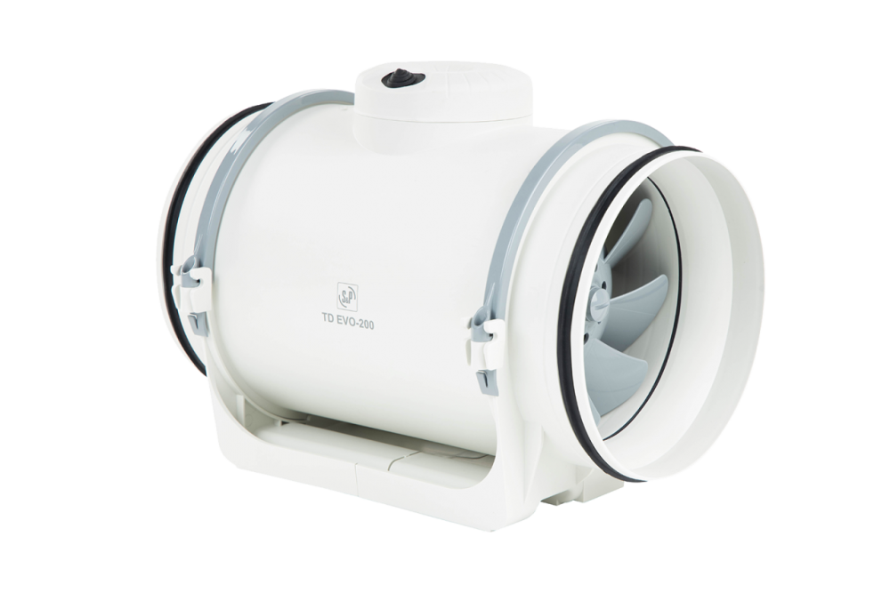 Вентилятори моделі Soler & Palau TD-EVO-VAR працюють на одношвидкісному типі електричного двигуна. Вони мають вбудований регулятор швидкості, а також таймер, завдяки чому можна налаштувати роботу системи. Є можливість віддаленого управління вентилятором.