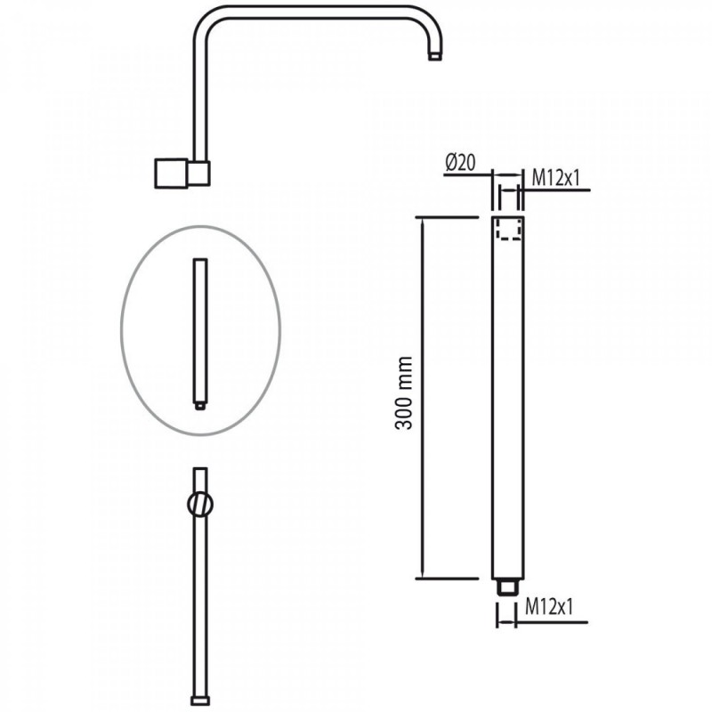 Подовжувач для душової штанги Tres 30 см білий матовий