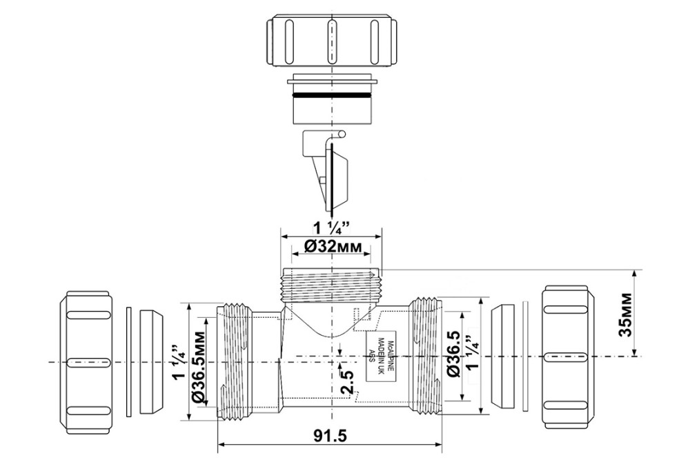 Подовжувач McAlpine із зворотним клапаном 32 мм поліпропілен білий S28NRV-32