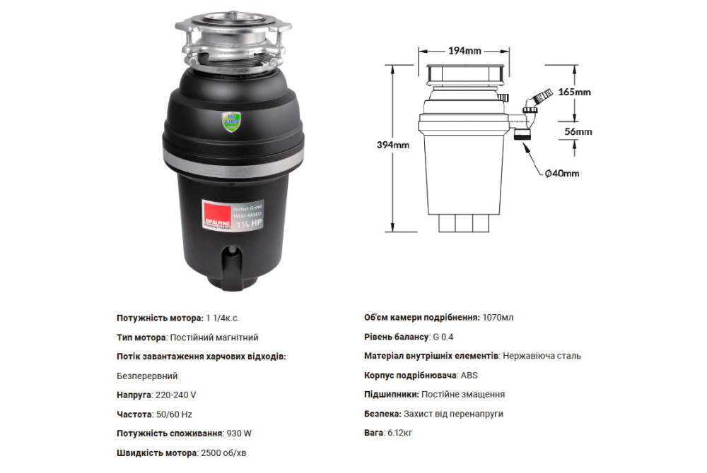 - Дивитися інші: Подрібнювачі харчових відходів McAlpine