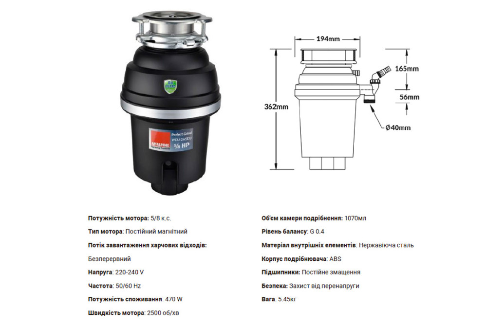 - Дивитися інші: Подрібнювачі харчових відходів McAlpine