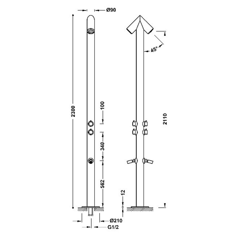 Подвійний душ для саду або басейну Tres Public Spaces нержавіюча сталь 13499502