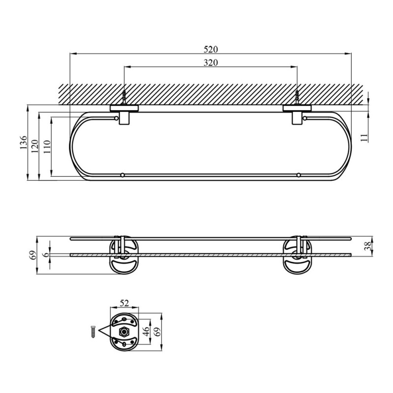 Полиця Kroner KRM Elbe - ACG2907-1виготовлена з прозорого скла із закругленими краями, кріплення виготовлені з міцного металу з хромованим покриттям. Довжина полиці - 520 мм. Полицю можна поставитипід дзеркалом і зберігати на ньому засоби гігієни ванної кімнати, а бортик захистить їх від випадкового падіння. Не розміщуйте полицю в місцях прямого контакту з водою.