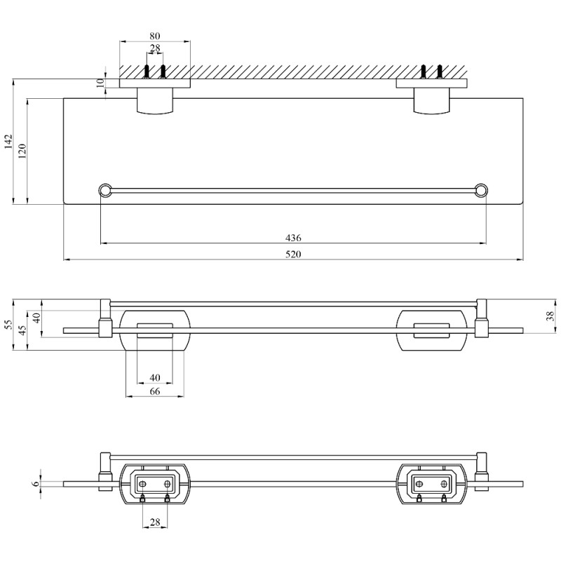 Полиця для ванної кімнати Kroner KRP Graz-GRP95611 52 см скло CV024734